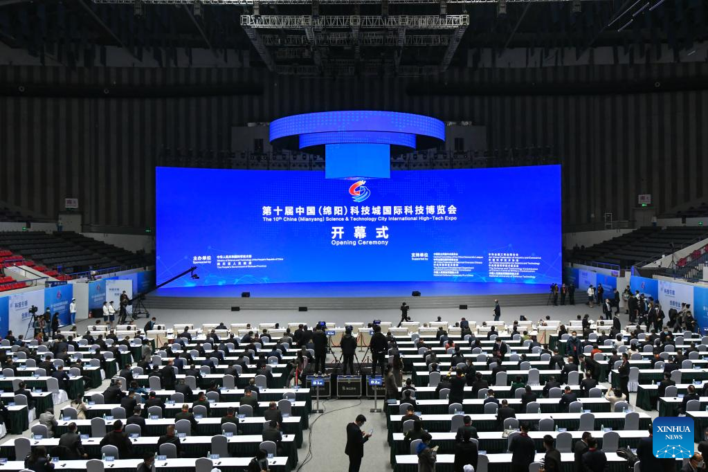 This photo shows the opening ceremony of the 10th China (Mianyang) Science and Technology City International High-Tech Expo in Mianyang, southwest China's Sichuan Province, Nov. 16, 2022. (Xinhua/Tang Wenhao)