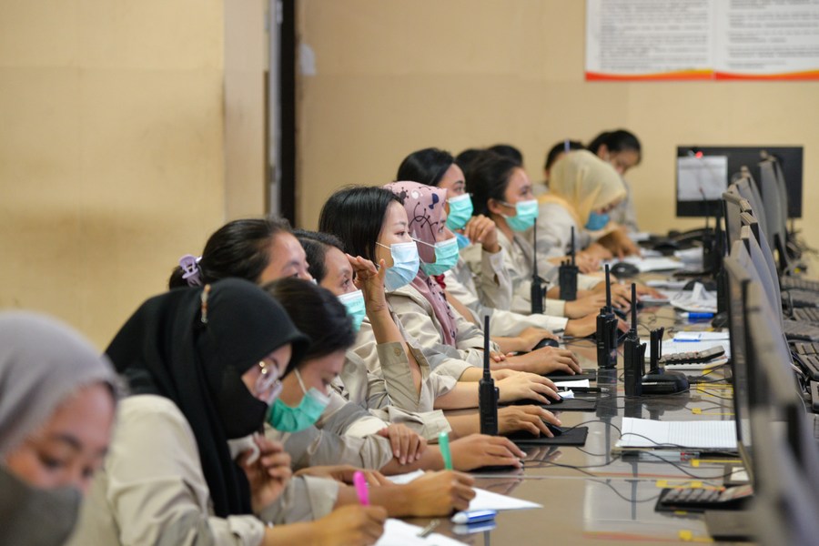 Workers work at a control room of ferronickel business unit in Weda Bay Industrial Park, North Maluku, Indonesia, Sept. 25, 2022. (Xinhua/Xu Qin)