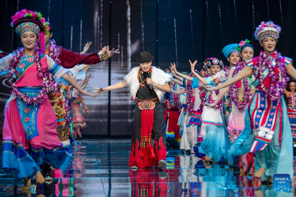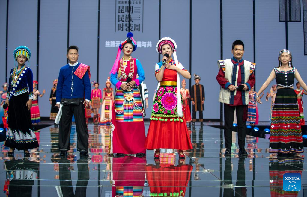 Entertainers perform during the opening ceremony of an ethnic clothing festival held in Kunming, southwest China's Yunnan Province, Nov. 15, 2022. Creations from different ethnic groups of Yunnan will be presented during the ethnic clothing festival. (Xinhua/Chen Xinbo)