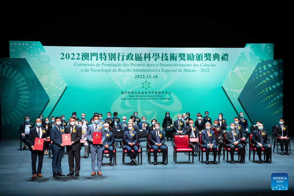 MACAO, Nov. 16 (Xinhua) -- The presentation ceremony of Macao Science and Technology Awards was held here Wednesday, with 22 projects and 30 graduate students awarded for their scientific and research achievements in respective fields.
