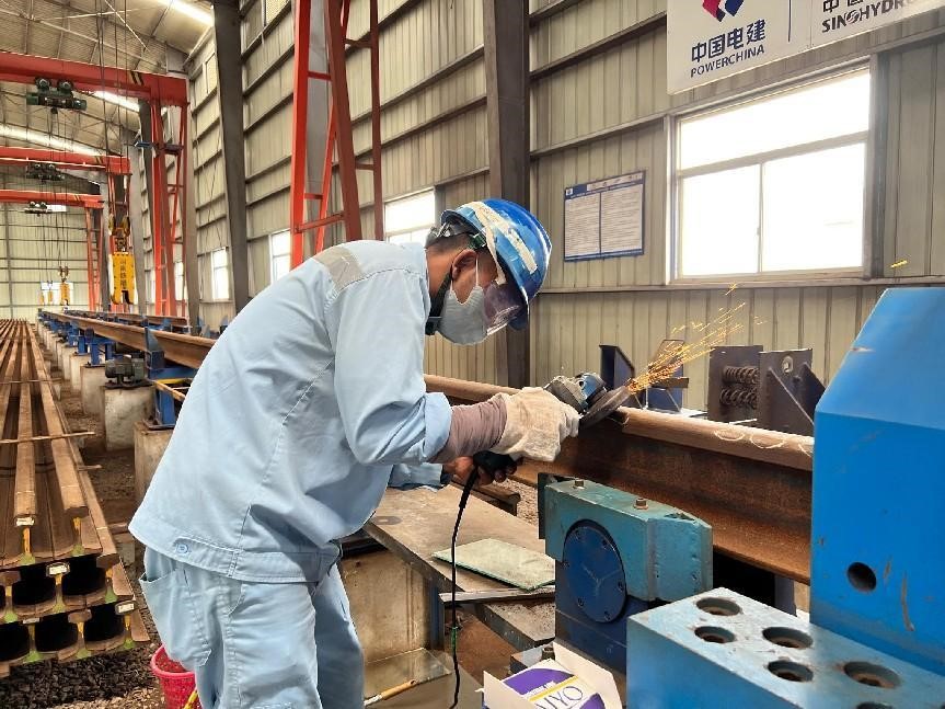 An Indonesian worker polishes seamless rail tracks. (People's Daily/Li Qiang)