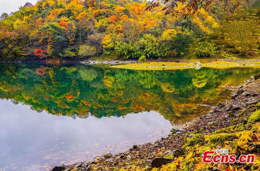 Landscape of the Moon Lake and colorful mountains enveloped in the mist on a winter morning, creating a mysterious scenery in Ya'an City, southwest China's Sichuan Province. (Photo/China News Service)