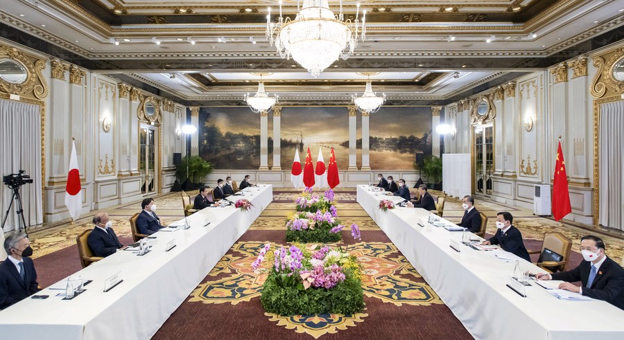 Thirdly, the two sides spoke highly of the series of activities commemorating the 50th anniversary of the normalization of China-Japan relations this year, agreed to hold a new meeting of the high-level consultation mechanism on people-to-people exchanges between China and Japan at an early time, and facilitate exchanges and communication through channels between governments, political parties, legislatures, localities and youth.