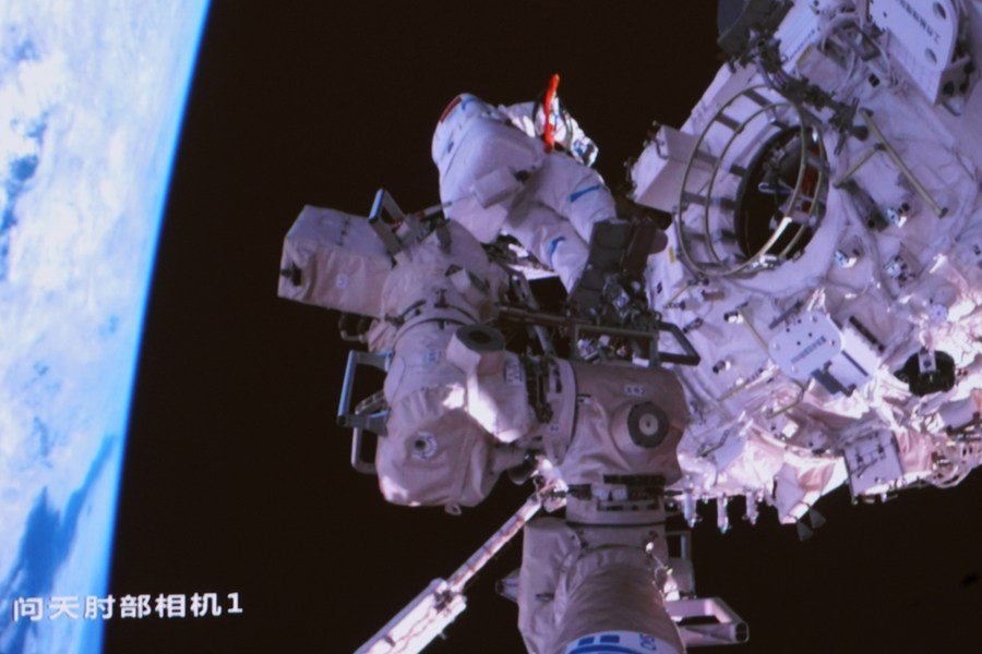 BEIJING, Nov. 17 (Xinhua) -- The Shenzhou-14 crew on board the orbiting Chinese Tiangong space station completed their third spacewalk at 4:50 p.m. (Beijing Time) on Thursday, according to the China Manned Space Agency.