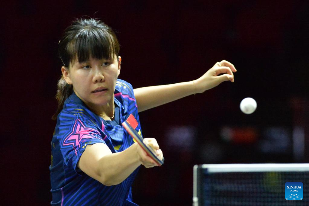 Wang Yidi of China returns the ball during the women's singles 1st round match against Zauresh Akasheva of Kazakhstan at the Asian Cup 2022 table tennis in Bangkok, Thailand, Nov. 17, 2022. (Xinhua/Rachen Sageamsak)