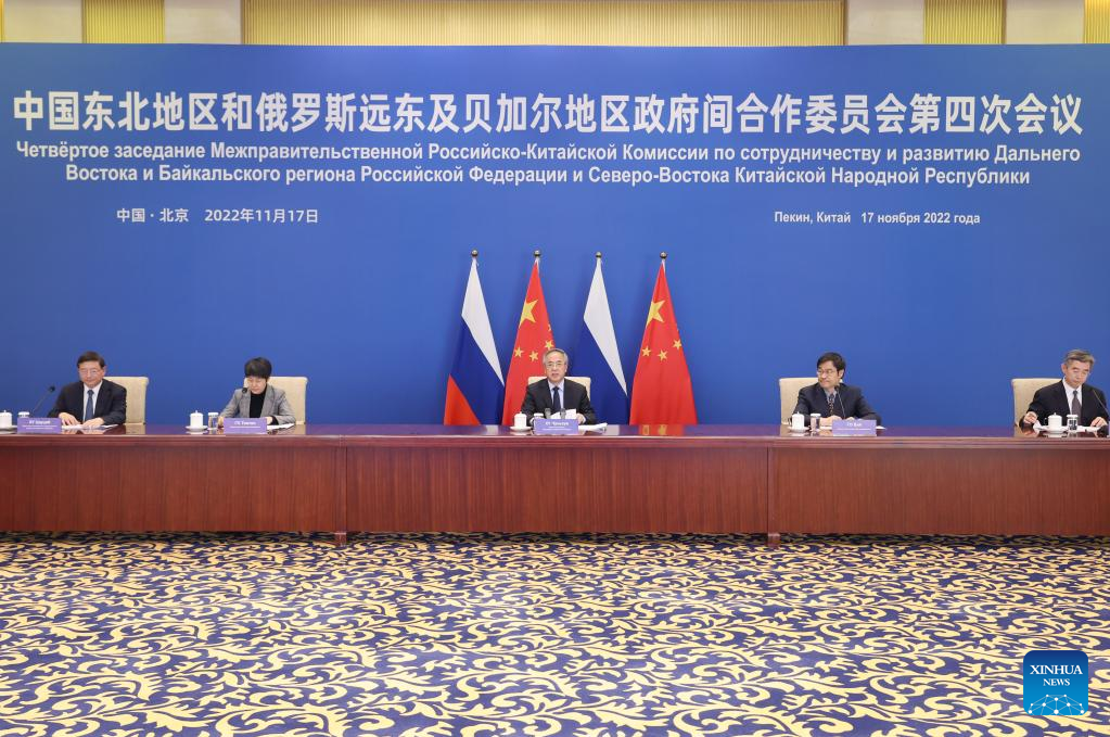 BEIJING, Nov. 17 (Xinhua) -- Chinese Vice Premier Hu Chunhua co-chaired the fourth meeting of the Intergovernmental Commission for Cooperation of Northeast China and the Far East and Baikal Region of Russia on Thursday, together with Yury Trutnev, Russian deputy prime minister and the presidential envoy to the Far Eastern Federal District of Russia.