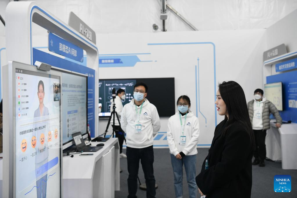 A staff member demonstrates a multi-modal AI diagnosis product at the 5th World Voice Expo in Hefei, east China's Anhui Province, Nov. 17, 2022. (Xinhua/Zhu Qing)