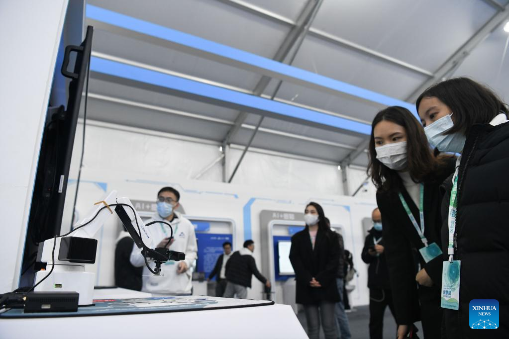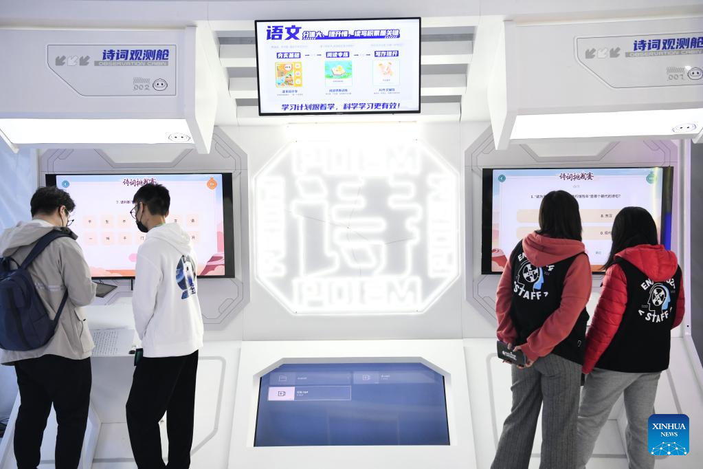 Visitors look at intelligent products applied to educational sphere at the 5th World Voice Expo in Hefei, east China's Anhui Province, Nov. 17, 2022. (Xinhua/Zhang Duan)