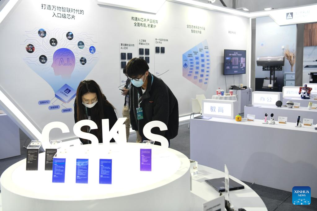 Visitors view exhibits at the 5th World Voice Expo in Hefei, east China's Anhui Province, Nov. 17, 2022. (Xinhua/Zhu Qing)