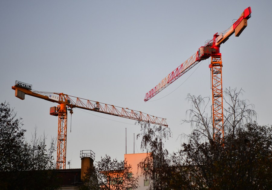Photo taken on Nov. 6, 2022 shows tower cranes at a construction site in Berlin, Germany. (Xinhua/Ren Pengfei)
