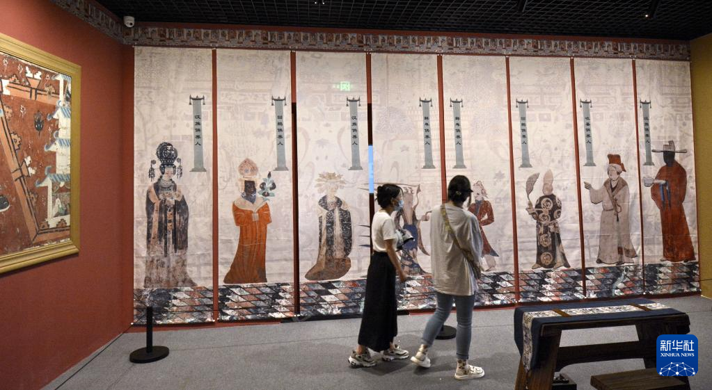 Visitors watch replicas of murals in the Mogao Grottoes of Dunhuang in Beijing on July 10, 2022. (Photo/Xinhua)