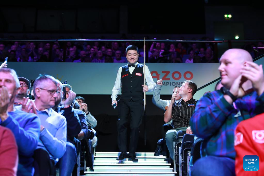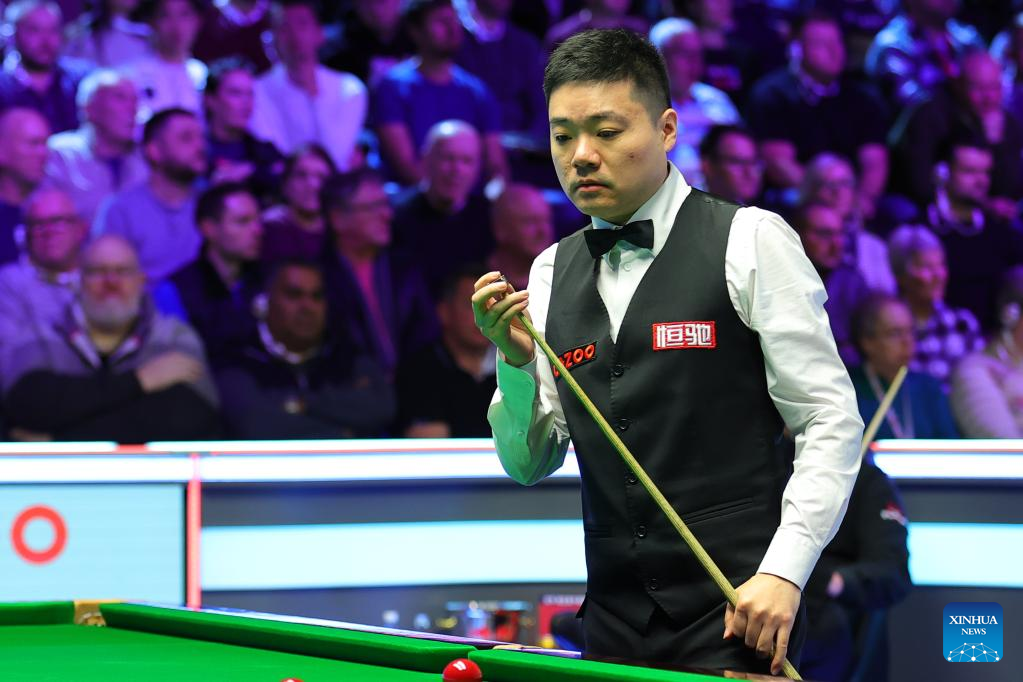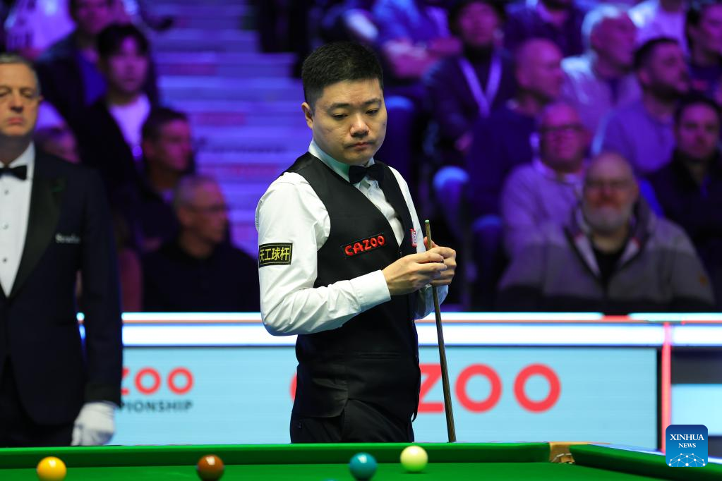 Ding Junhui of China is seen ahead of the second round match against Jamie Clarke of Wales at 2022 UK Snooker Championship in York, Britain, Nov. 17, 2022. (Photo by Zhai Zheng/Xinhua)