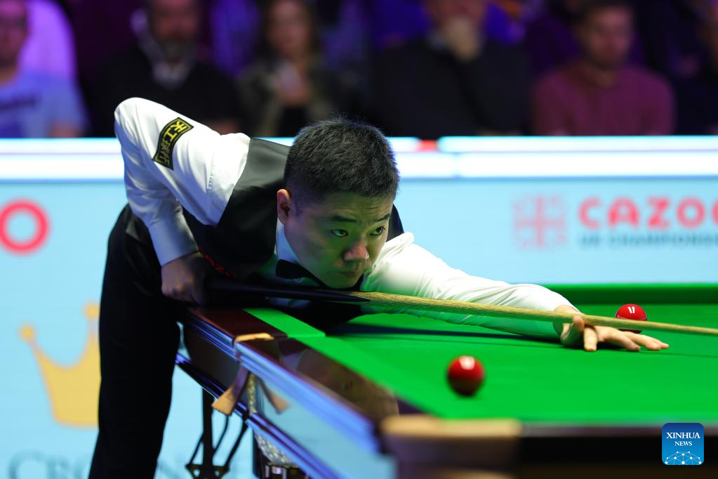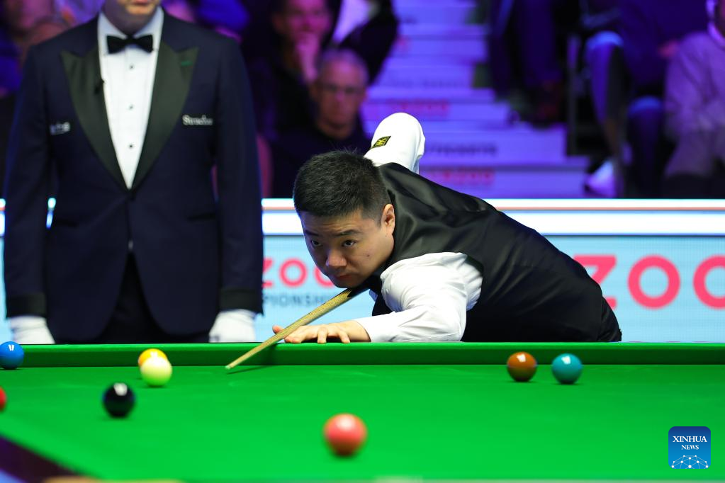 Ding Junhui of China competes during the second round match against Jamie Clarke of Wales at 2022 UK Snooker Championship in York, Britain, Nov. 17, 2022. (Photo by Zhai Zheng/Xinhua)