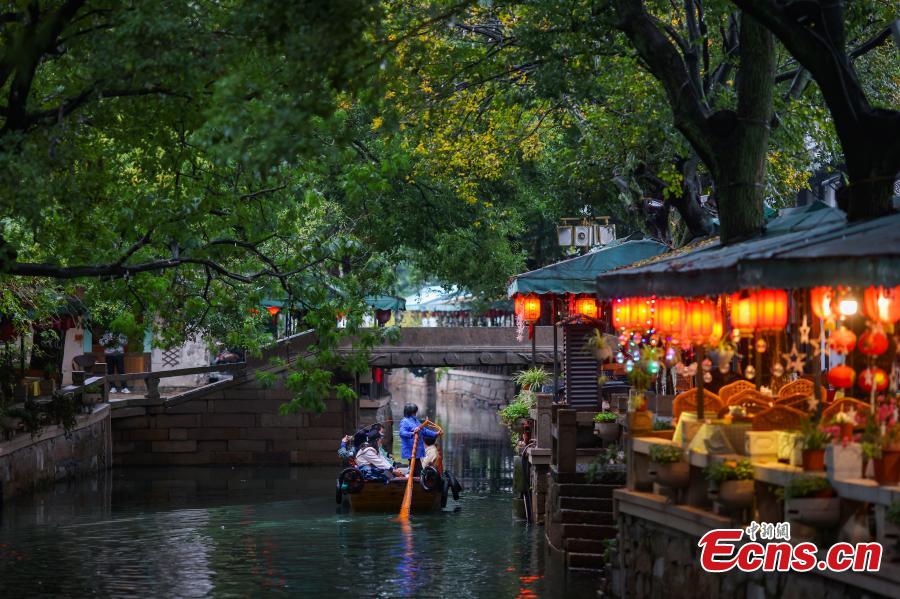 Tourists take a sightseeing boat in Tongli ancient town in Wujiang district of Suzhou, east China's Jiangsu Province, Nov. 17, 2022. (Photo: China News Service/Yang Bo)