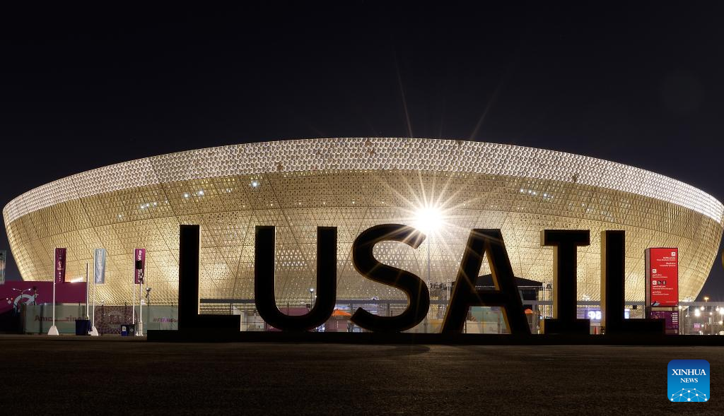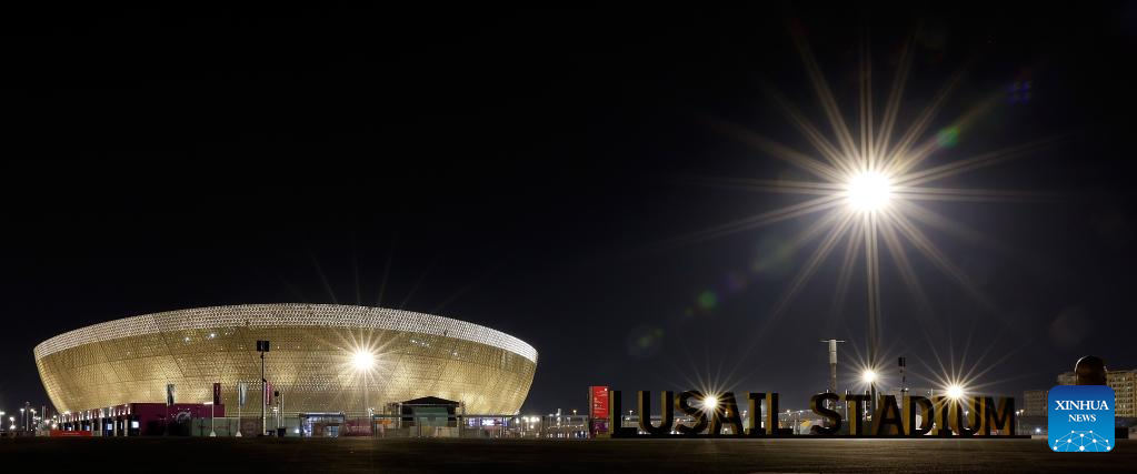 This photo taken on Nov. 17, 2022 shows a view of the Lusail stadium in Doha, Qatar. The FIFA World Cup Qatar 2022 will kick off on Nov. 20, 2022. (Xinhua/Wang Lili)