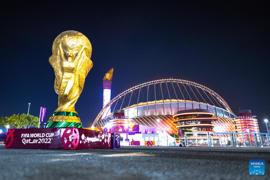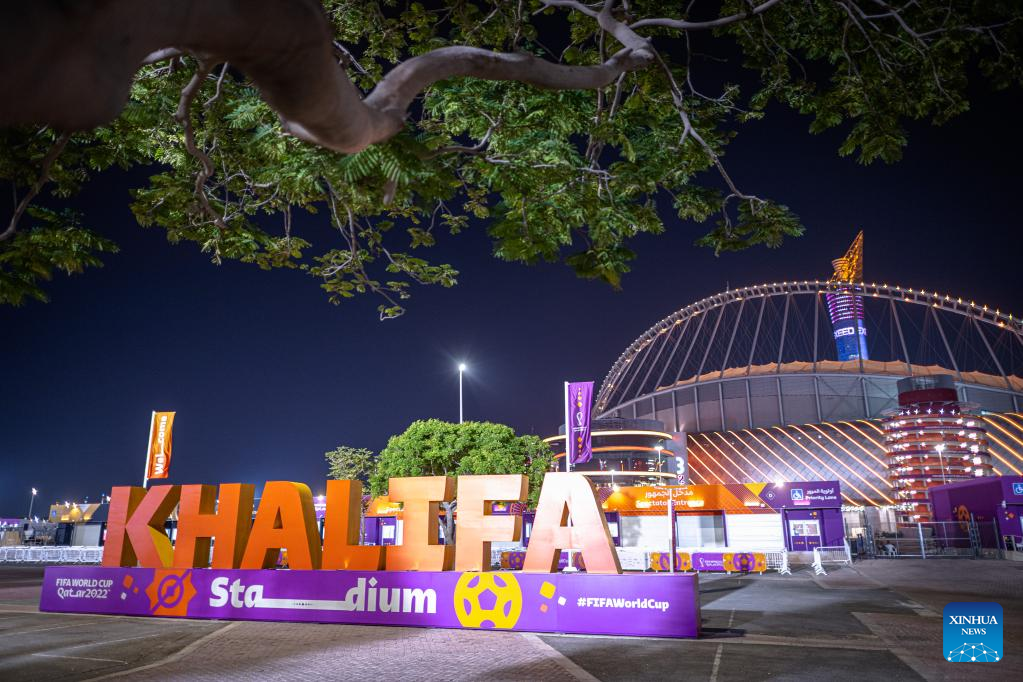 This photo taken on Nov. 17, 2022 shows a view of the Khalifa International Stadium in Doha, Qatar. The FIFA World Cup Qatar 2022 will kick off on Nov. 20, 2022. (Xinhua/Xiao Yijiu)