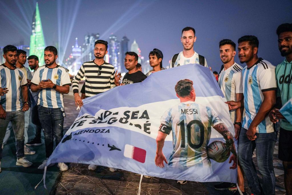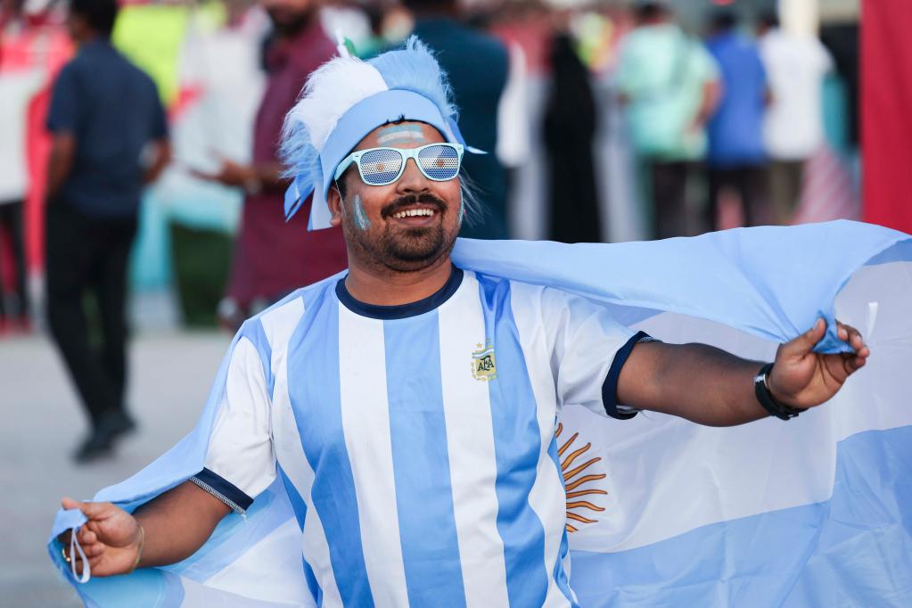 A supporter of Argentina is seen at Al Corniche waterfront in Doha, Qatar, Nov. 18, 2022, ahead of the FIFA World Cup Qatar 2022. (Xinhua/Meng Yongmin)