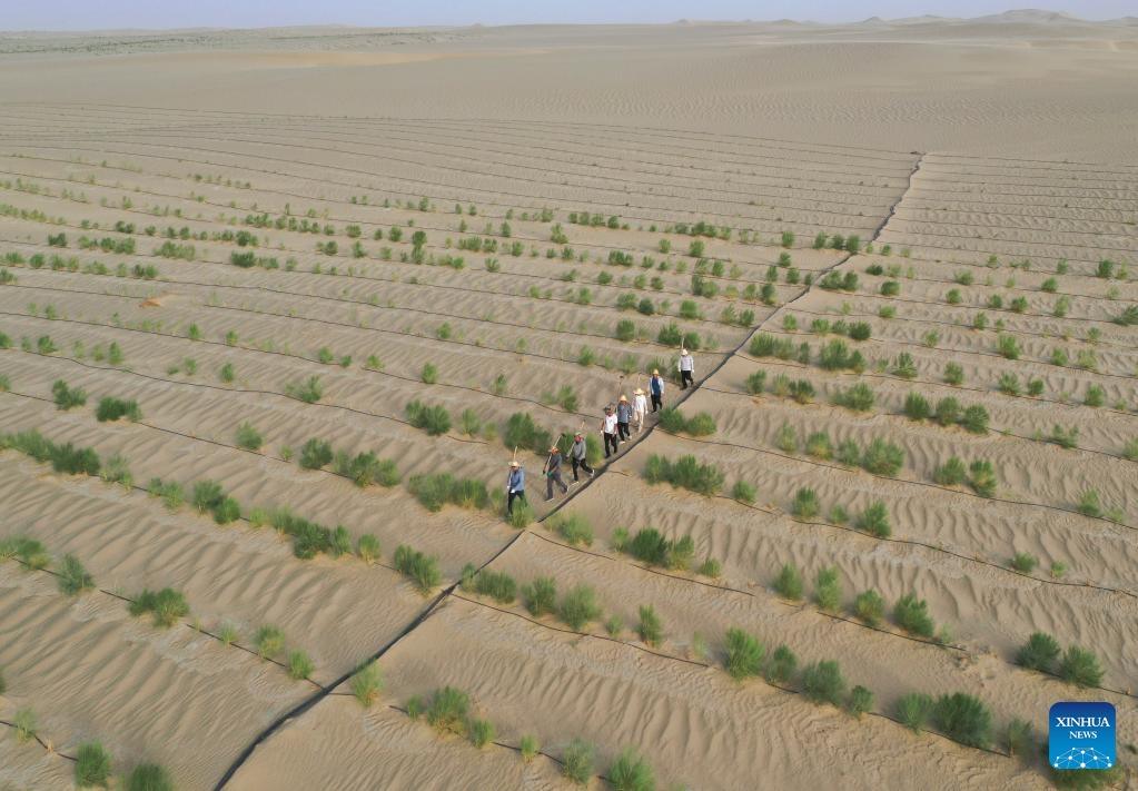 Since 2018, Tian, together with his partners, has grown more than 10 varieties of desert plants in southern Xinjiang's Qiemo County, including populus euphratica, rose willow, and saxoul, spanning more than 800 hectares.