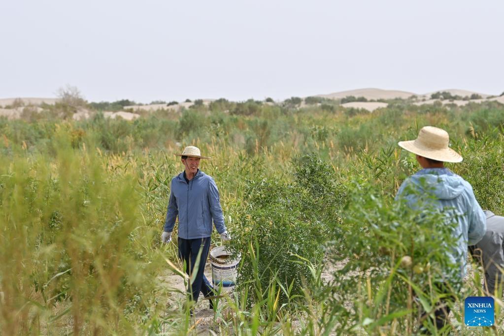 Such desert control methods as growing cistanche "on the one hand speed up environmental improvement and ecological restoration of the desert terrain, while on the other hand help generate income for locals and grow the local economy," said Chang Qing, a senior engineer at the Xinjiang Institute of Ecology and Geography under the Chinese Academy of Sciences.