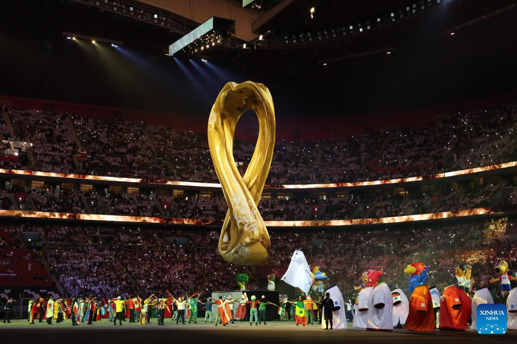 Dancers perform during the opening ceremony before the Group A match between Qatar and Ecuador at the 2022 FIFA World Cup at Al Bayt Stadium in Al Khor, Qatar, on Nov. 20, 2022. (Xinhua/Han Yan)