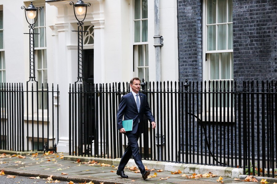 Chancellor of the Exchequer Jeremy Hunt of the United Kingdom (UK) leaves 11 Downing Street in London, Britain, on Nov. 17, 2022. (Xinhua)