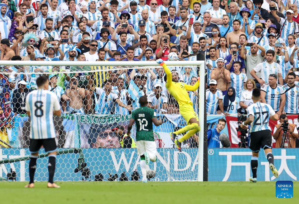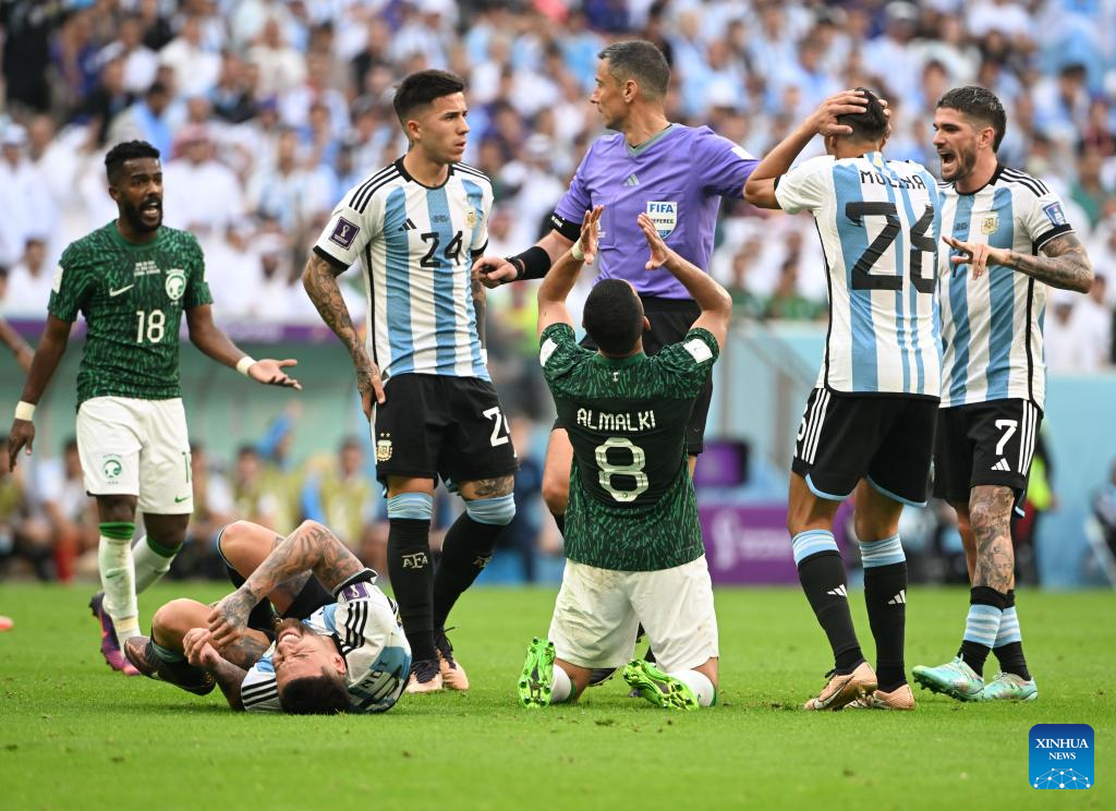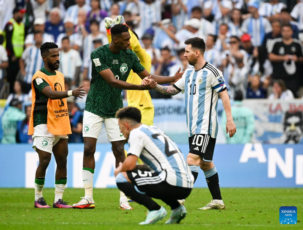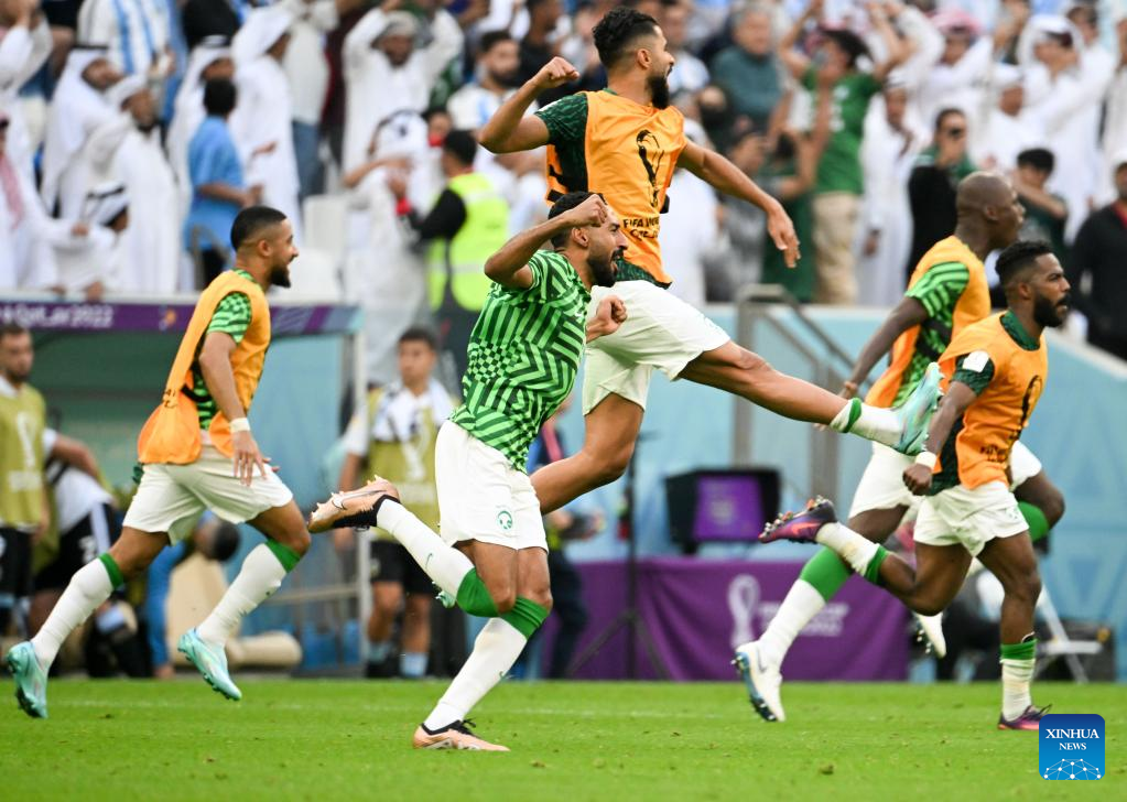 LUSAIL, Nov. 22 (Xinhua) -- Saleh Alshehri and Salem Aldawsari scored second-half goals as Saudi Arabia caused a major upset by beating Argentina 2-1 in their FIFA World Cup Group C match here on Tuesday.