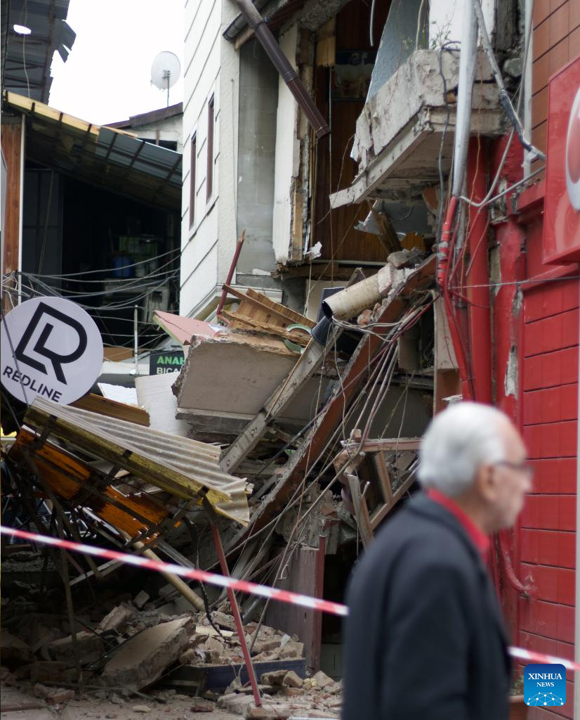 A building is damaged by an earthquake in Duzce, Trkiye, Nov. 23, 2022. At least 50 people were injured after a magnitude 5.9 earthquake struck Trkiye's northwestern province of Duzce early Wednesday. (Photo by Mustafa Kaya/Xinhua)