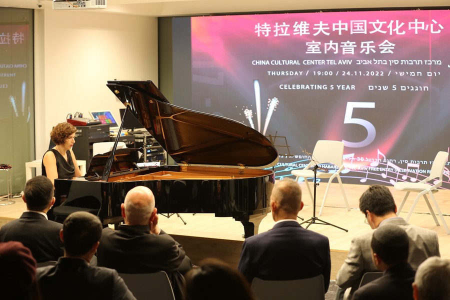 Israeli pianist Einat Fabrikant performs at a concert marking the fifth founding anniversary of the China Cultural Center in Tel Aviv, Israel, on Nov. 24, 2022. (Xinhua/Wang Zhuolun)