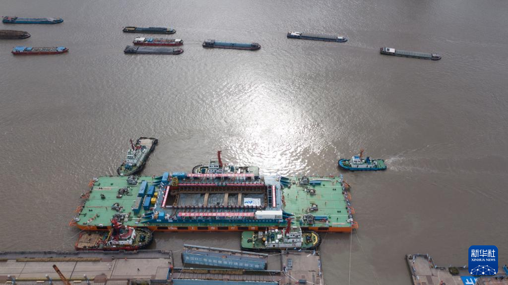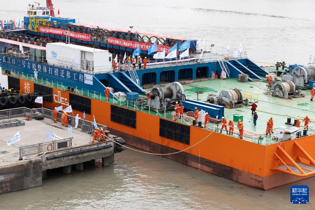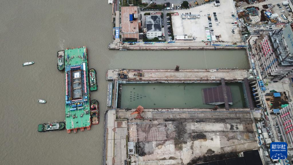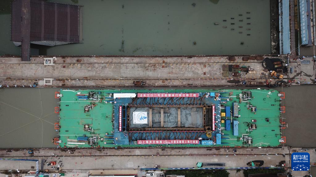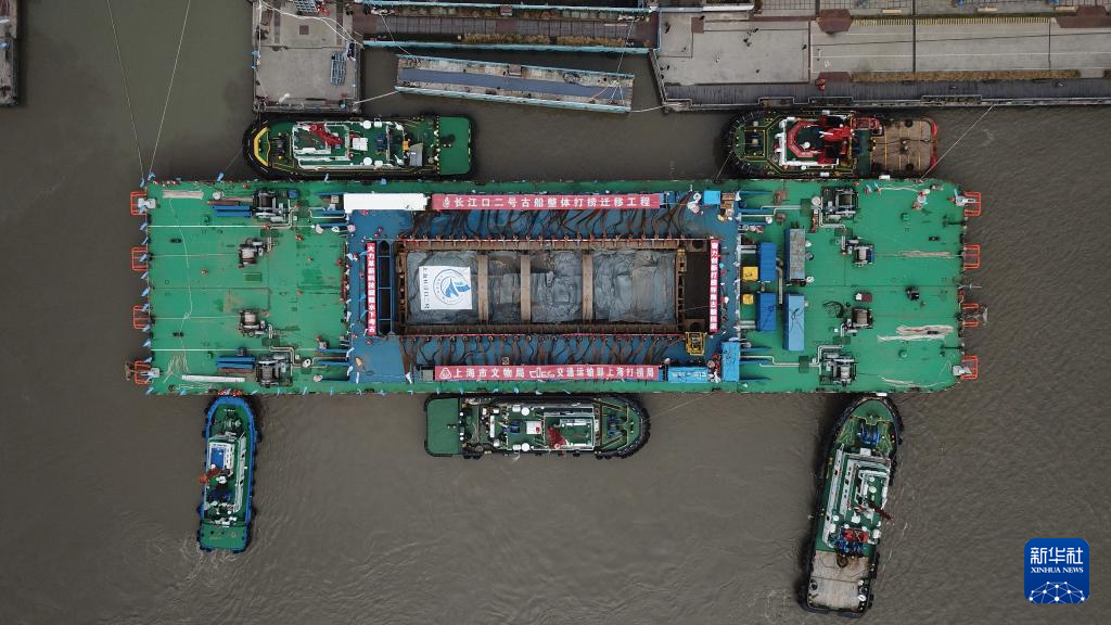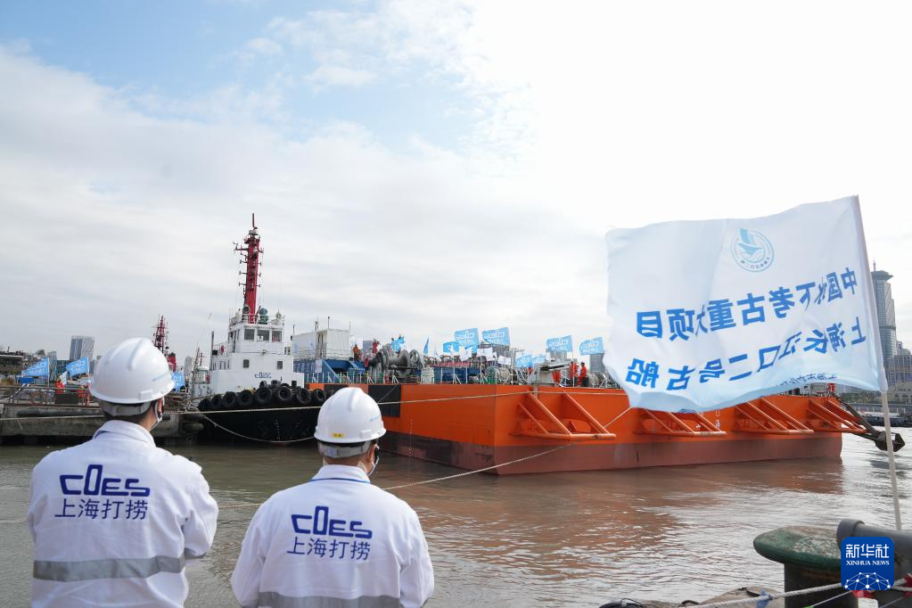 Yangtze No. 2 Ancient Shipwreck transferred to dock near Huangpu River in Shanghai
