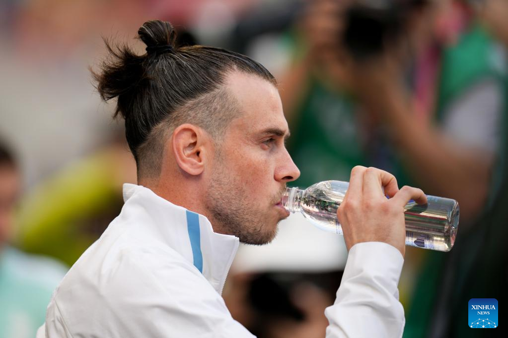 Gareth Bale of Wales drinks water before the Group B match between Wales and Iran at the 2022 FIFA World Cup at Ahmad Bin Ali Stadium in Al Rayyan, Qatar, Nov. 25, 2022. (Xinhua/Meng Dingbo)