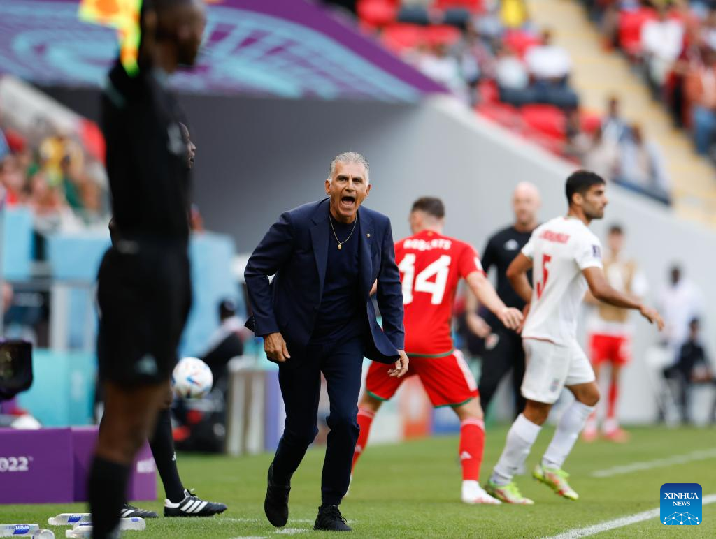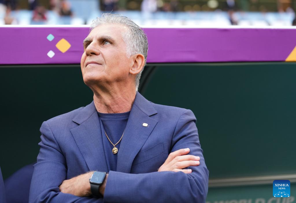 Carlos Queiroz, head coach of Iran, reacts before the Group B match between Wales and Iran at the 2022 FIFA World Cup at Ahmad Bin Ali Stadium in Al Rayyan, Qatar, Nov. 25, 2022. (Xinhua/Meng Dingbo)