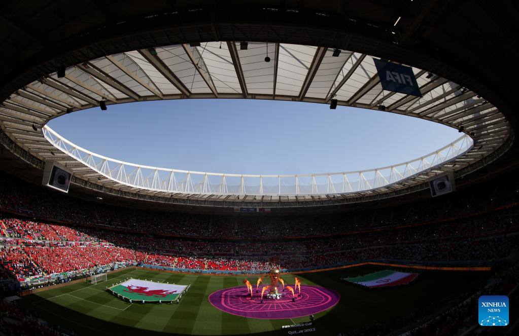 Photo taken on Nov. 25, 2022 shows the performance before the Group B match between Wales and Iran at the 2022 FIFA World Cup at Ahmad Bin Ali Stadium in Al Rayyan, Qatar. (Xinhua/Jia Haocheng)