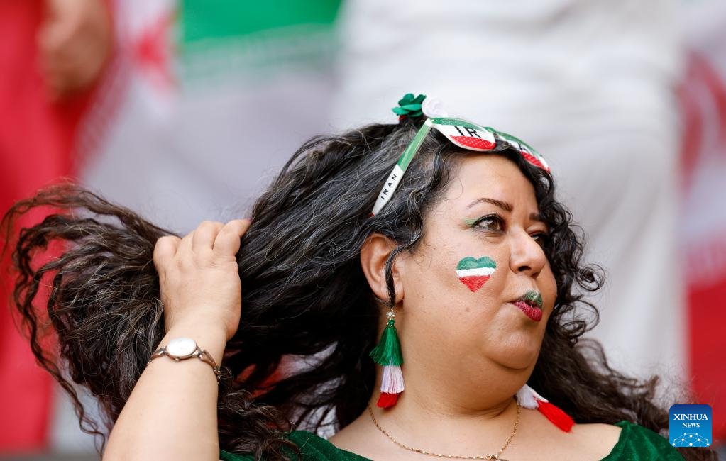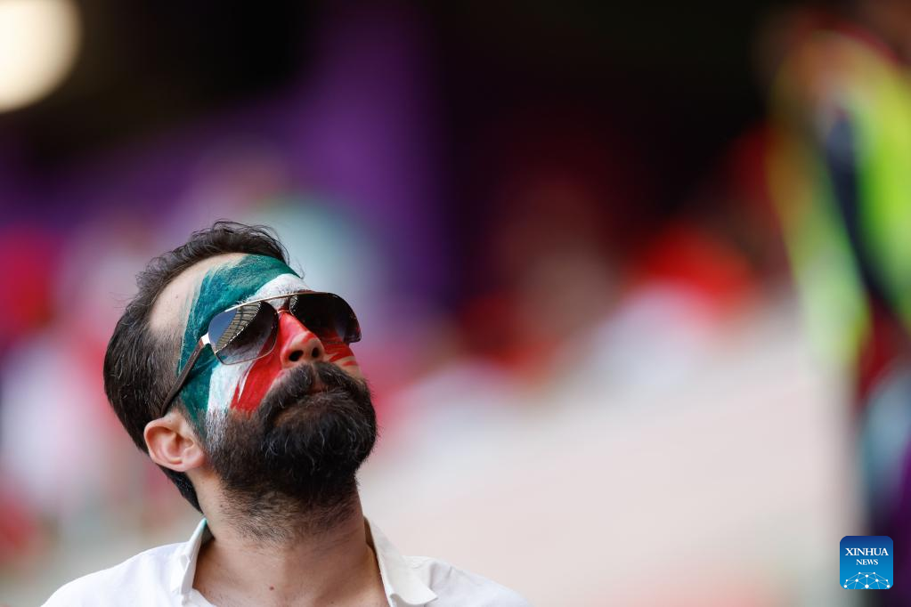 A fan reacts before the Group B match between Wales and Iran at the 2022 FIFA World Cup at Ahmad Bin Ali Stadium in Al Rayyan, Qatar, Nov. 25, 2022. (Xinhua/Wang Lili)