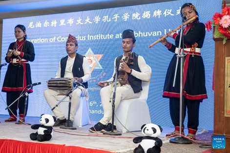 Local artists perform during the inauguration ceremony for the Confucius Institute at Tribhuvan University in Kathmandu, Nepal. The Confucius Institute at Tribhuvan University, the second of its kind in Nepal, was inaugurated on Aug. 16, 2022 in the Nepali capital Kathmandu. (Xinhua/Hari Maharjan)