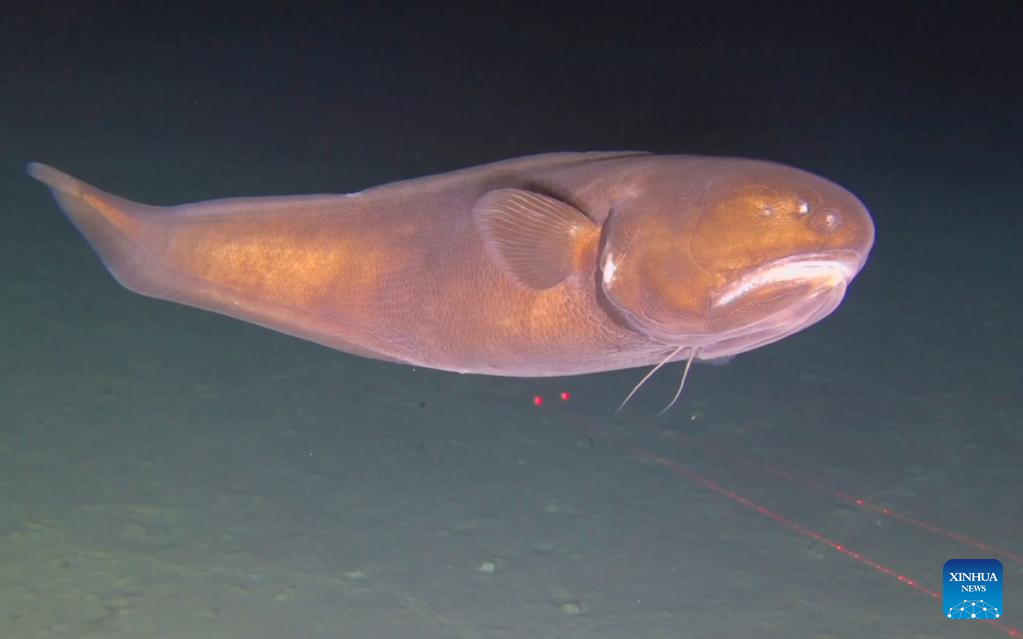 A marine organism is pictured from Human Occupied Vehicle Fendouzhe in deep sea on Nov. 7, 2022. (Xinhua)