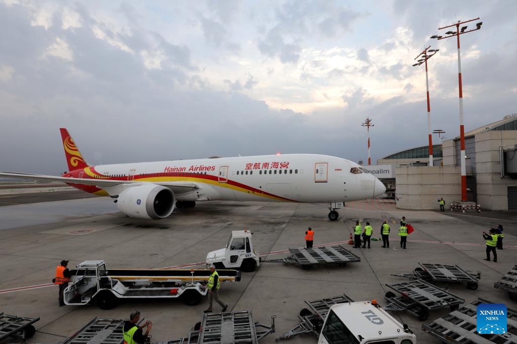 Hainan Airlines reopened the route between Shenzhen in southern China and Israel's Tel Aviv with one round trip every Tuesday after it suspended all direct flights between the Chinese mainland and Israel in February 2020. The flight is carried out by a Boeing 787 aircraft.