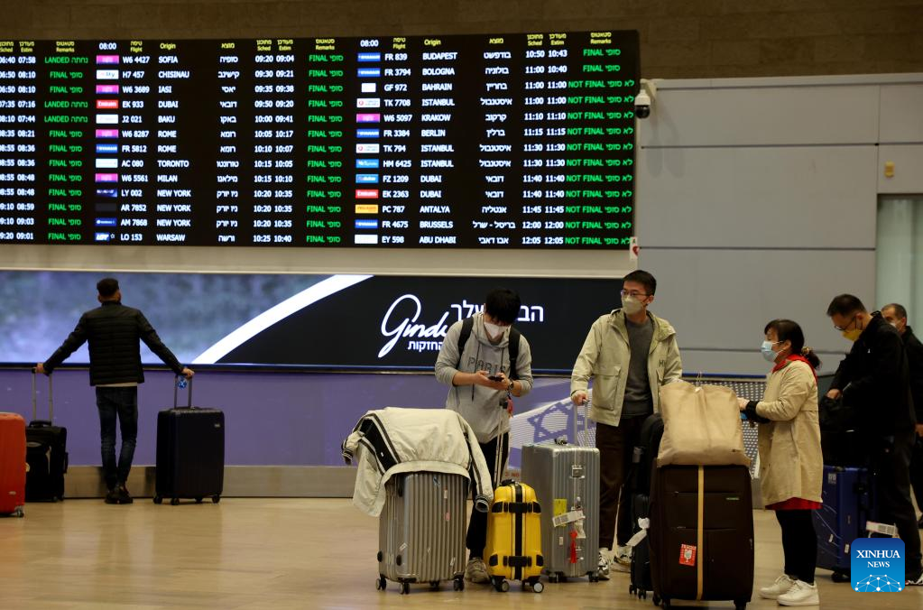 Passengers with their baggage are seen after landing with a Hainan Airlines flight at the Ben Gurion Airport near Tel Aviv, Israel, Nov. 29, 2022. (Photo by Gil Cohen Magen/Xinhua)