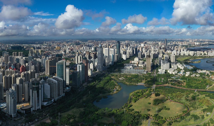 Aerial photo taken on May 24, 2021 shows the scenery in Haikou, south China's Hainan Province. (Xinhua/Guo Cheng)