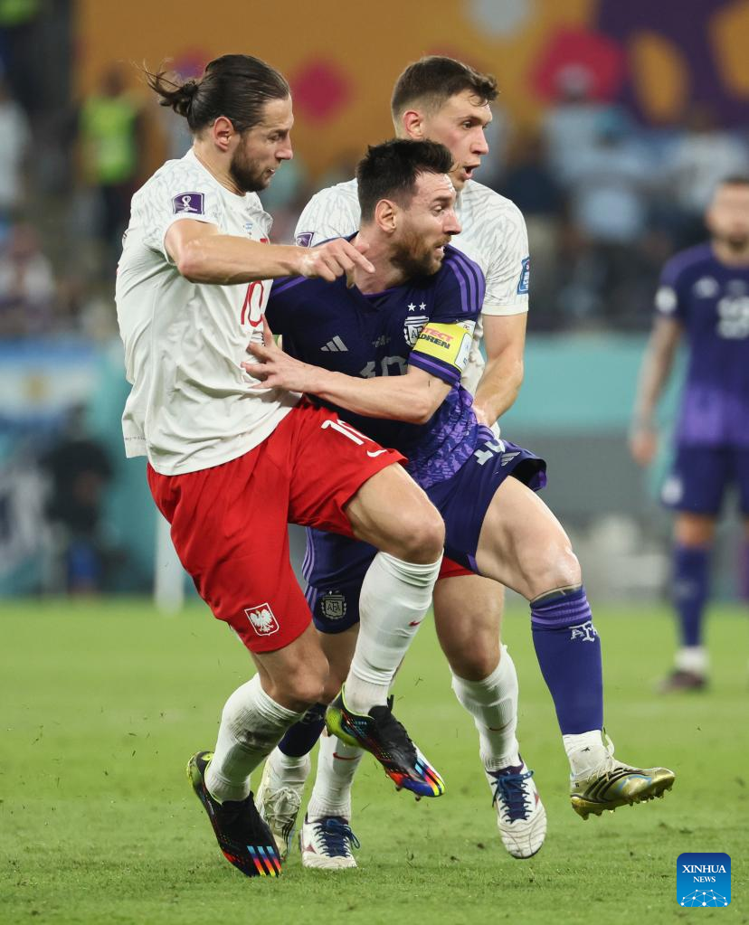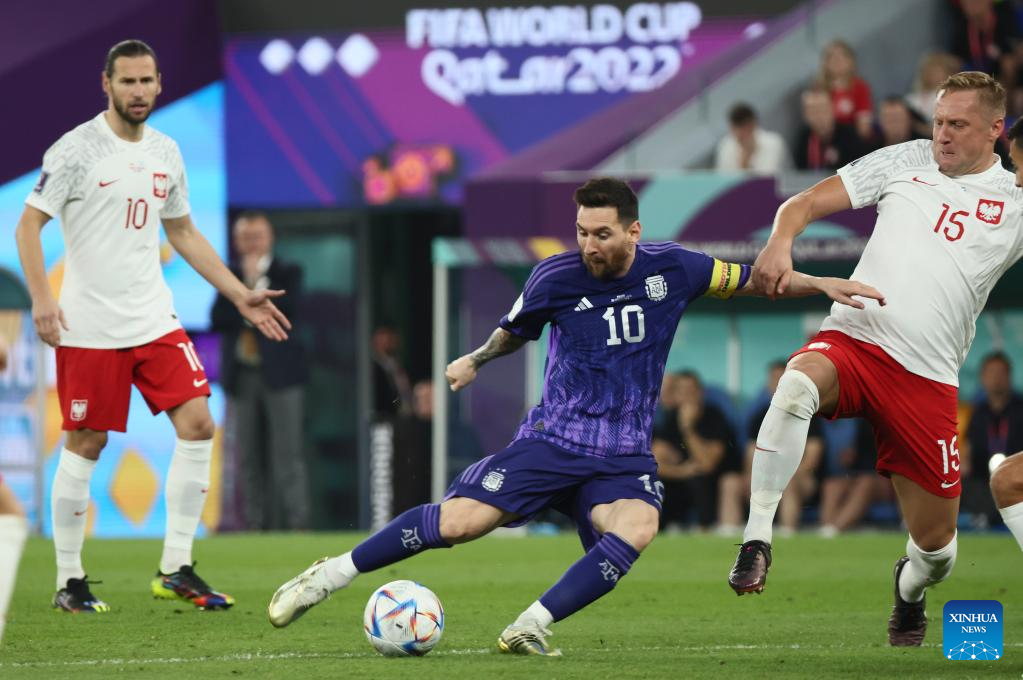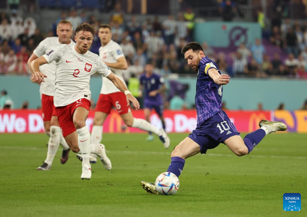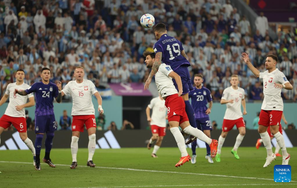DOHA, Nov. 30 (Xinhua) -- Second-half goals from Alexis Mac Allister and Julian Alvarez gave Argentina a 2-0 win over Poland on Wednesday, which saw them finish top of Group C and book a last-16 meeting with Australia at the FIFA World Cup in Qatar.