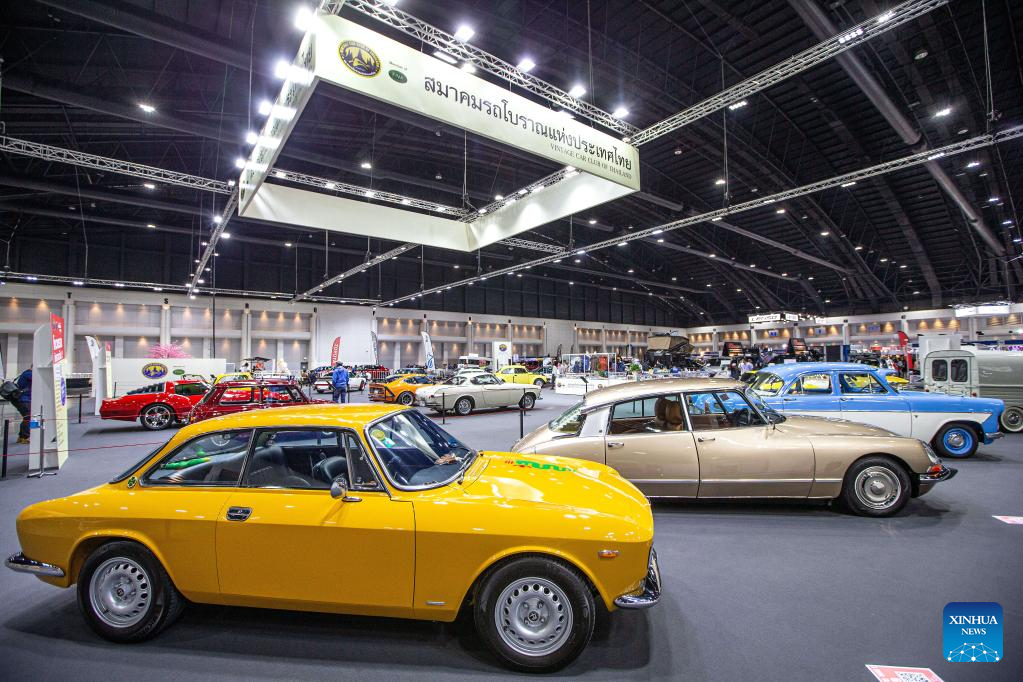 This photo taken on Dec. 1, 2022 shows the vintage cars exhibited during the Thailand International Motor Expo 2022 in Bangkok, Thailand. (Xinhua/Wang Teng)