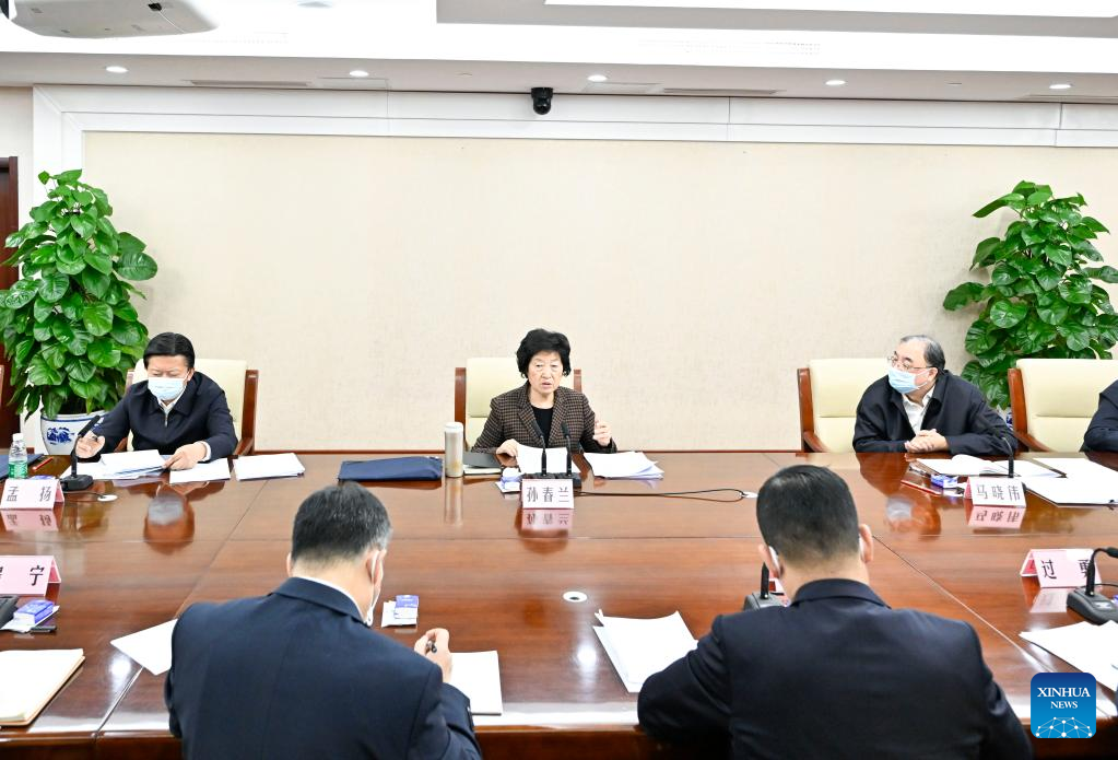BEIJING, Dec. 1 (Xinhua) -- Chinese Vice Premier Sun Chunlan on Thursday called for drawing on effective practices for fighting COVID-19 in communities while optimizing response measures.