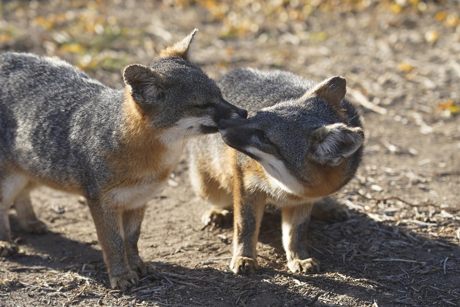 Photo taken on Nov. 29, 2022 shows island foxes living at Channel Islands National Park, California, the United States. (Photo by Zeng Hui/Xinhua)