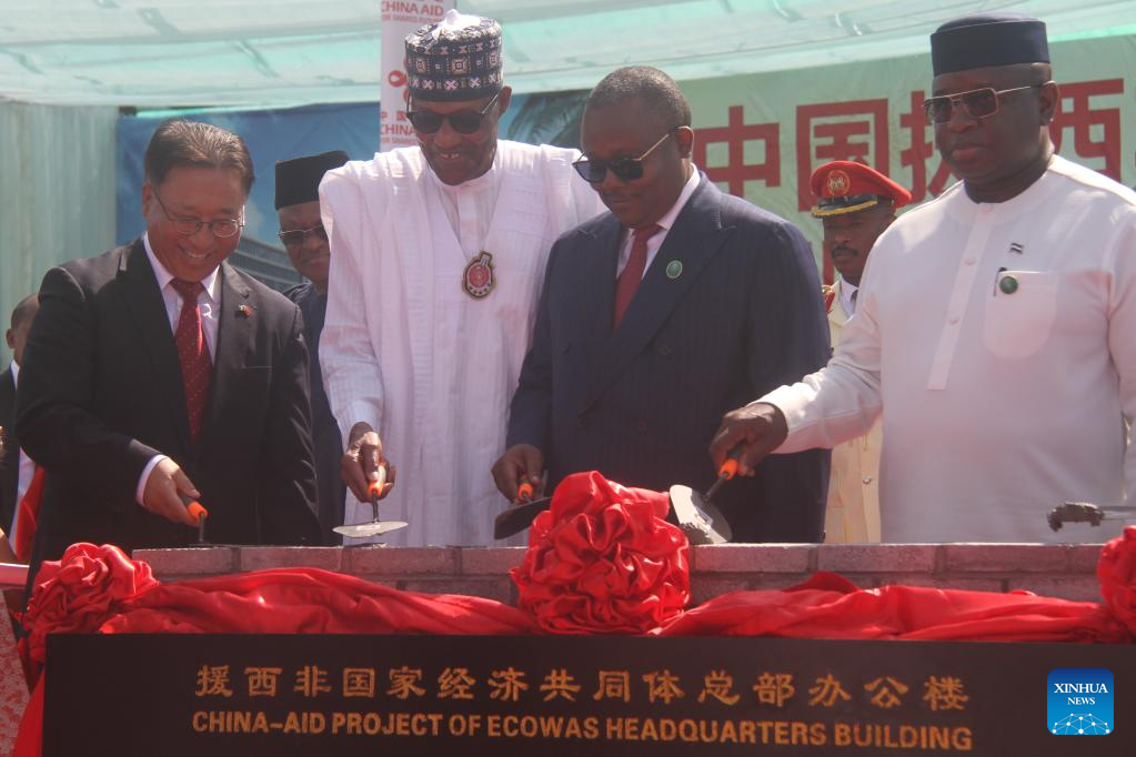 At least three West African leaders including Nigerian President Muhammadu Buhari and his counterparts from Guinea Bissau and Sierra Leone, as well as President of the ECOWAS Commission Omar Alieu Touray and Chinese ambassador to Nigeria Cui Jianchun, performed the groundbreaking ceremony to formally commence the construction of the new headquarters.