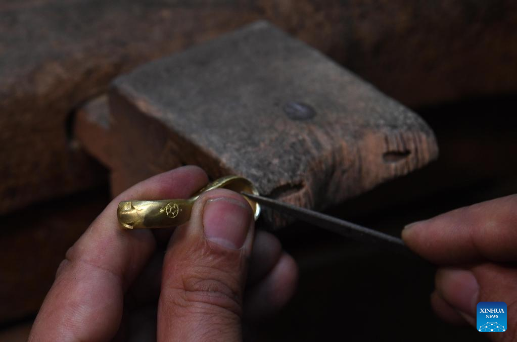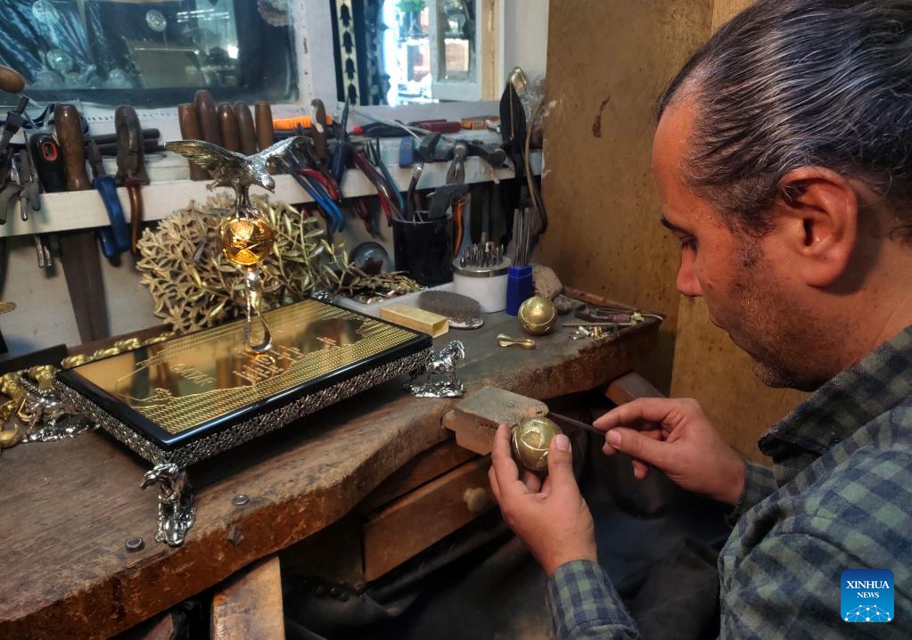Sabri Demirci, an artisan and owner of a silver shop, works at his atelier in Istanbul, Türkiye, Dec. 1, 2022.(Xinhua/Shadati)