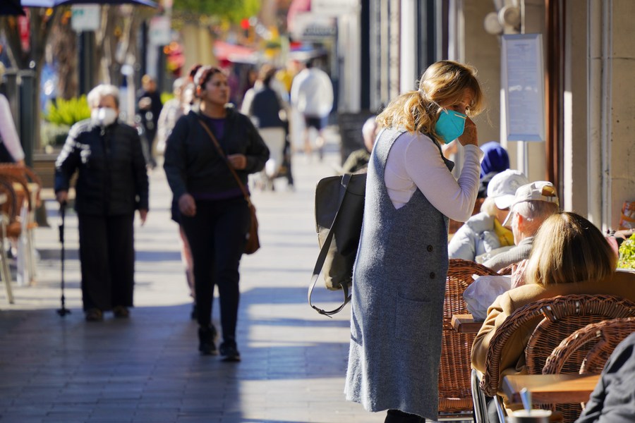 People are seen on a street in Burlingame, California, the United States, on Nov. 29, 2022. (Xinhua/Wu Xiaoling)