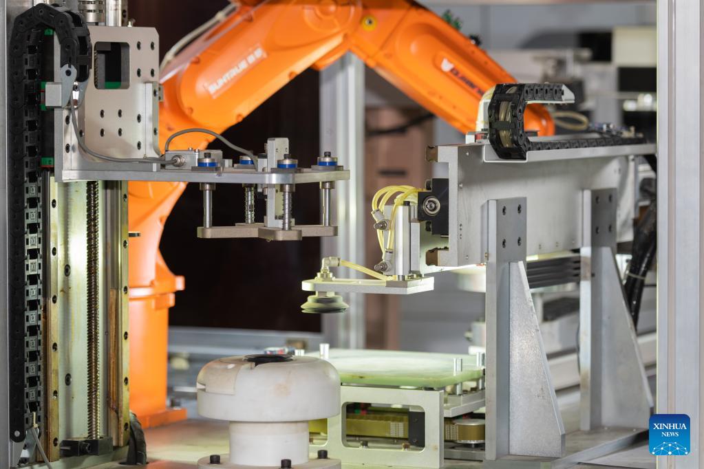 This photo taken on Nov. 27, 2022 shows a production line of cookware tailored for conditions in plateau areas in a factory in Lhasa, southwest China's Tibet Autonomous Region. (Xinhua/Huang Yaoman)