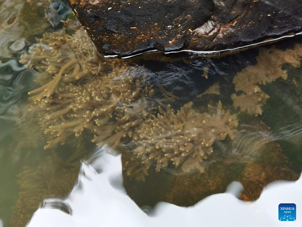 This photo taken on Dec. 1, 2022 shows freshwater sponges found in the Xishui national nature reserve of southwest China's Guizhou Province. (Xinhua)