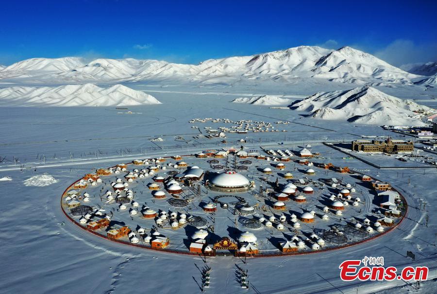 Snow-covered Bayanbulak grassland presents enchanting scenery