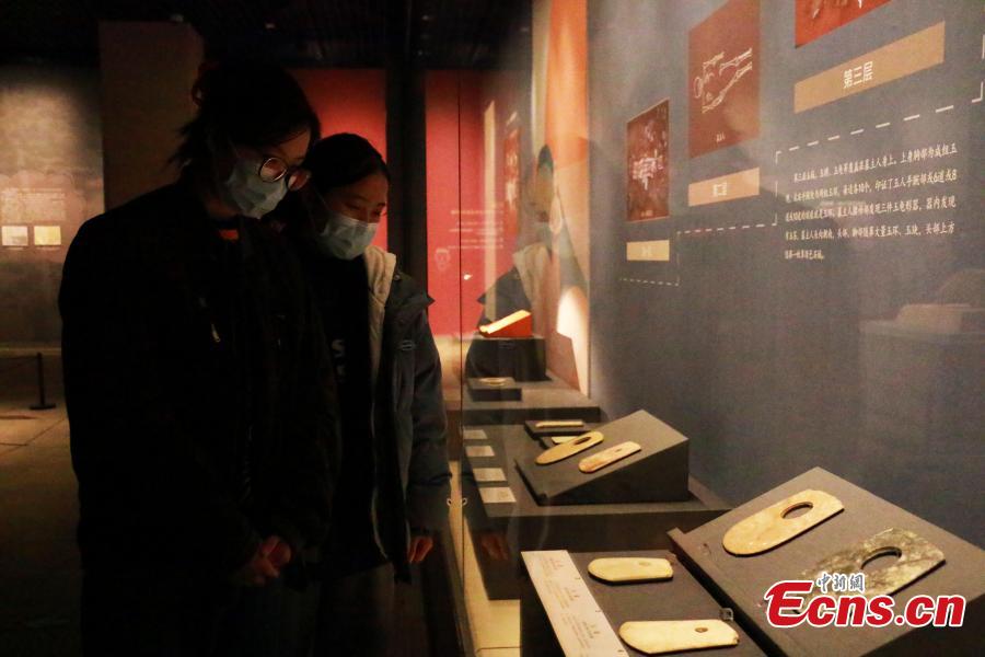 People view exhibits during an exhibition on Lingjiatan culture in Hefei, east China's Anhui Province, Dec. 7, 2022. (Photo: China News Service/Zhang Qiang)