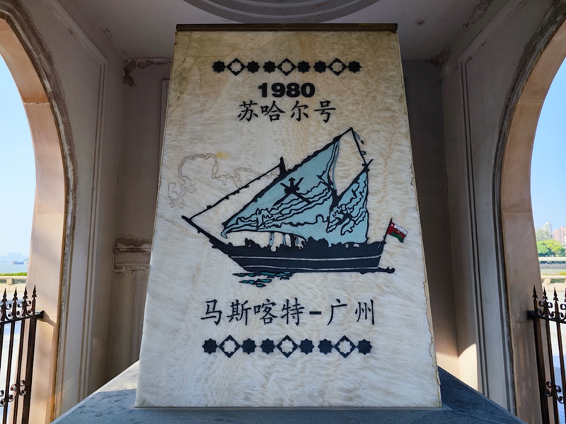 A monument to the ship Sohar in a park in Guangzhou’s Haizhu district, Guangdong Province. (Photo/Piao Xinyu)